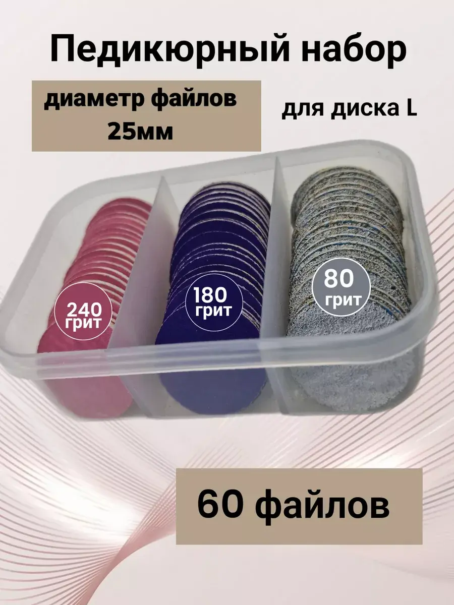 Файлы для смарт-диска L, d25мм - это незаменимый инструмент в вашем арсенале для полного ухода за ногтями и кожей с помощью фрезы для маникюра и педикюра. Если у Вас уже имеется диск , нет необходимости приобретать лишний, Вы можете купить толко сменные одноразовые файлы. Насадки для снятия позволяют качественно снять огрубевшую кожу. Находясь в основе педикюрного бокса, он станет необходимым аппаратом для обработки и гладкости ногтей, ног, палец и пяток. Вы сможете провести аппаратный педикюр в домашних условиях, который решит проблему с огрубевшей кожи , трещин , натоптышей , мозолей. В контейнер имеются наклейки сменными абразивными файлы 80 , 180 , 240 грит, которые позволяют достичь гладкого и здорового вида ногтей после шлифовки . Они не только эффективно удаляют ороговевшие части пятки, но и обеспечивают полную обработку ногтевой пластины. Данное средство является расходником, но благодаря металлической основе и высокому качеству изготовления, оно долговечно и прослужит вам на долгое время. Одноразовые насадки гарантируют безопасность использования, так как каждая насадка будет новой и стерильной. Это особенно важно при депиляции и обработке ногтей, чтобы избежать возможных инфекций и раздражений. Практичное решение, которое позволит вам сохранить порядок и все необходимые вещи всегда будут под рукой.