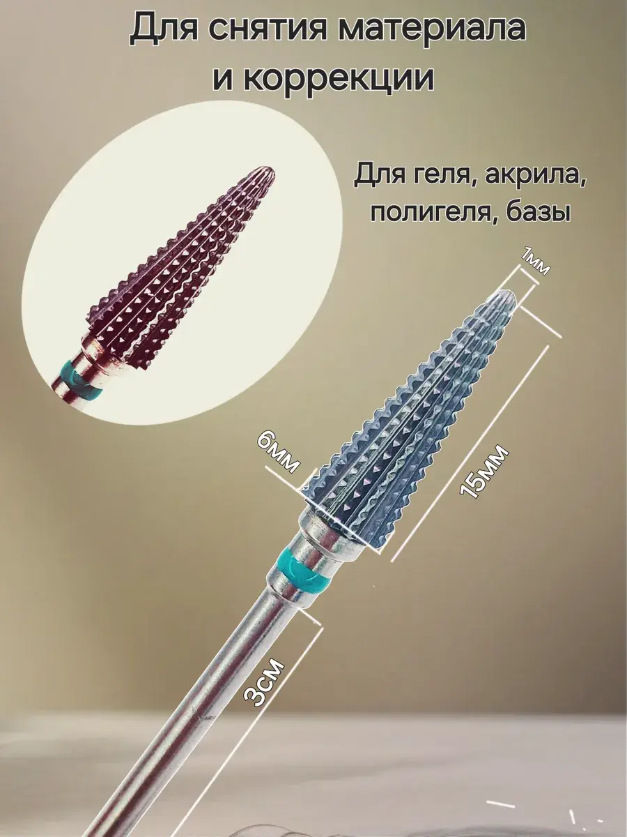Фреза тв для снятия покрытия, маникюра и педикюра твердосплавная универсальная. Формы: кукуруза, елочка, торнадо, елка, усеченный конус, безопасная для снятия и коррекции. Высококачественные фрезы износостойкого сплава - карбид очень острые , служат долго, не забиваются в отличие от керамических фрез и не нагреваются , что делает процедуру безопасной для клиента. Твердосплав применяется в аппаратном маникюре и педикюре для: для коррекции длины и формы ногтя, снятия полимеров - акрил, гель, гель лак, биогель, акригель, полигель, выпиливания линии улыбки, удаления отслоек, части ногтевой пластины, работы с натуральным утолщенным ногтем, обработки старых натоптышей, грубой кожи, кератозных ногтей. Рекомендуемая скорость вращения 5-25 тыс. об/мин. Безопасная фреза закругленный конус не повреждает ноготь, с ее помощью материал снимать быстро и легк, идеальна для коррекции, выпиливания арки . Для мягкого удаления плотного птеригия и как завершающая финишная обработка синусов. Подлежит химической стерилизации и дезинфекции. Абразив: средний синяя, грубый зеленая, фиолетовая насечка. Подходит для аппаратов STRONG, Marathon, RuNail, TNL, Irisk и аналогов. Маникюрная фреза маленький конус очень острая, будте аккуратны , работайте на маленьких оборотах. Фрезы тонкие для выпиливания ногтя и затеков в зоне кутикулы и боковых валиках , рекомендуем ими работать в положении ,,лежа,, и на высоких оборотах, так как твердосплав фреза тонкая. Фрезы конус используйте так же на высоких оборотах. С помощью зажима на микромоторе насадки можно фиксировать на удобную вам длину.