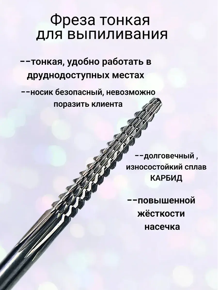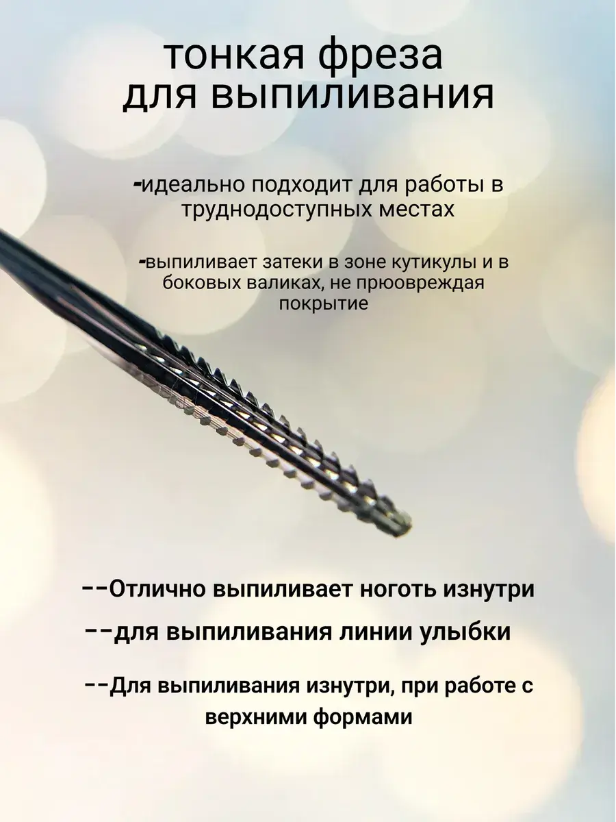 Фреза тв для снятия покрытия, маникюра и педикюра твердосплавная универсальная. Формы: кукуруза, елочка, торнадо, елка, усеченный конус, безопасная для снятия и коррекции. Высококачественные фрезы износостойкого сплава - карбид очень острые , служат долго, не забиваются в отличие от керамических фрез и не нагреваются , что делает процедуру безопасной для клиента. Твердосплав применяется в аппаратном маникюре и педикюре для: для коррекции длины и формы ногтя, снятия полимеров - акрил, гель, гель лак, биогель, акригель, полигель, выпиливания линии улыбки, удаления отслоек, части ногтевой пластины, работы с натуральным утолщенным ногтем, обработки старых натоптышей, грубой кожи, кератозных ногтей. Рекомендуемая скорость вращения 5-25 тыс. об/мин. Безопасная фреза закругленный конус не повреждает ноготь, с ее помощью материал снимать быстро и легк, идеальна для коррекции, выпиливания арки . Для мягкого удаления плотного птеригия и как завершающая финишная обработка синусов. Подлежит химической стерилизации и дезинфекции. Абразив: средний синяя, грубый зеленая, фиолетовая насечка. Подходит для аппаратов STRONG, Marathon, RuNail, TNL, Irisk и аналогов. Маникюрная фреза маленький конус очень острая, будте аккуратны , работайте на маленьких оборотах. Фрезы тонкие для выпиливания ногтя и затеков в зоне кутикулы и боковых валиках , рекомендуем ими работать в положении ,,лежа,, и на высоких оборотах, так как твердосплав фреза тонкая. Фрезы конус используйте так же на высоких оборотах. С помощью зажима на микромоторе насадки можно фиксировать на удобную вам длину.