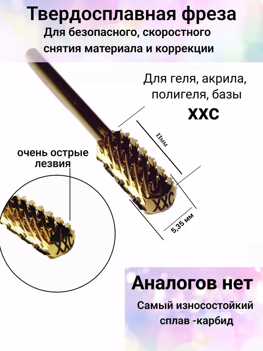Фреза тв для снятия покрытия, маникюра и педикюра твердосплавная универсальная. Формы: кукуруза, елочка, торнадо, елка, усеченный конус, безопасная для снятия и коррекции. Высококачественные фрезы износостойкого сплава - карбид очень острые , служат долго, не забиваются в отличие от керамических фрез и не нагреваются , что делает процедуру безопасной для клиента. Твердосплав применяется в аппаратном маникюре и педикюре для: для коррекции длины и формы ногтя, снятия полимеров - акрил, гель, гель лак, биогель, акригель, полигель, выпиливания линии улыбки, удаления отслоек, части ногтевой пластины, работы с натуральным утолщенным ногтем, обработки старых натоптышей, грубой кожи, кератозных ногтей. Рекомендуемая скорость вращения 5-25 тыс. об/мин. Безопасная фреза закругленный конус не повреждает ноготь, с ее помощью материал снимать быстро и легк, идеальна для коррекции, выпиливания арки . Для мягкого удаления плотного птеригия и как завершающая финишная обработка синусов. Подлежит химической стерилизации и дезинфекции. Абразив: средний синяя, грубый зеленая, фиолетовая насечка. Подходит для аппаратов STRONG, Marathon, RuNail, TNL, Irisk и аналогов. Маникюрная фреза маленький конус очень острая, будте аккуратны , работайте на маленьких оборотах. Фрезы тонкие для выпиливания ногтя и затеков в зоне кутикулы и боковых валиках , рекомендуем ими работать в положении ,,лежа,, и на высоких оборотах, так как твердосплав фреза тонкая. Фрезы конус используйте так же на высоких оборотах. С помощью зажима на микромоторе насадки можно фиксировать на удобную вам длину.