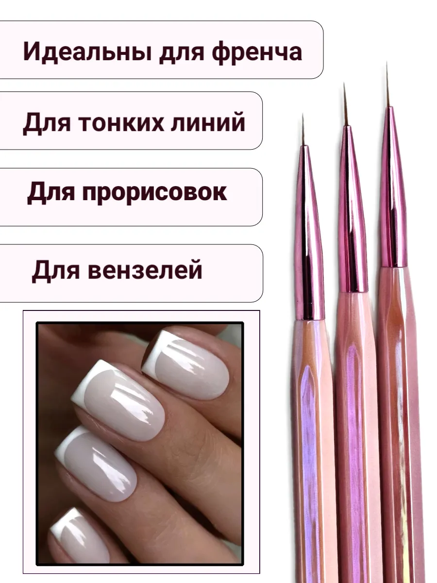 Позволяют рисовать тонкие линии и создавать сложный дизайн ногтей, включая французский маникюр (френч).