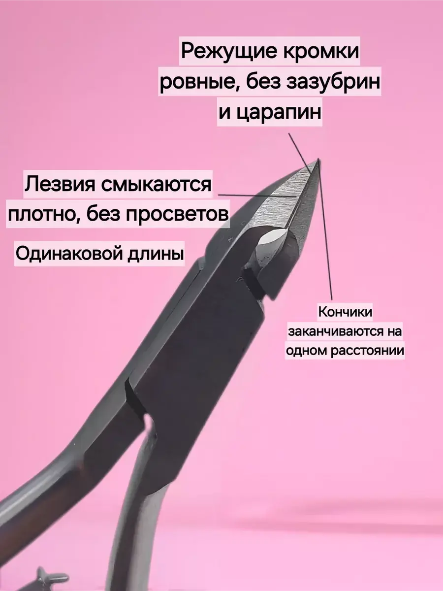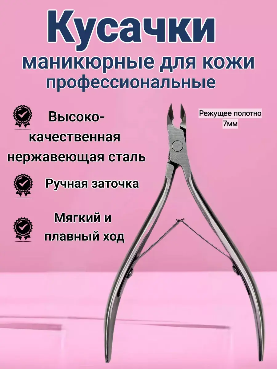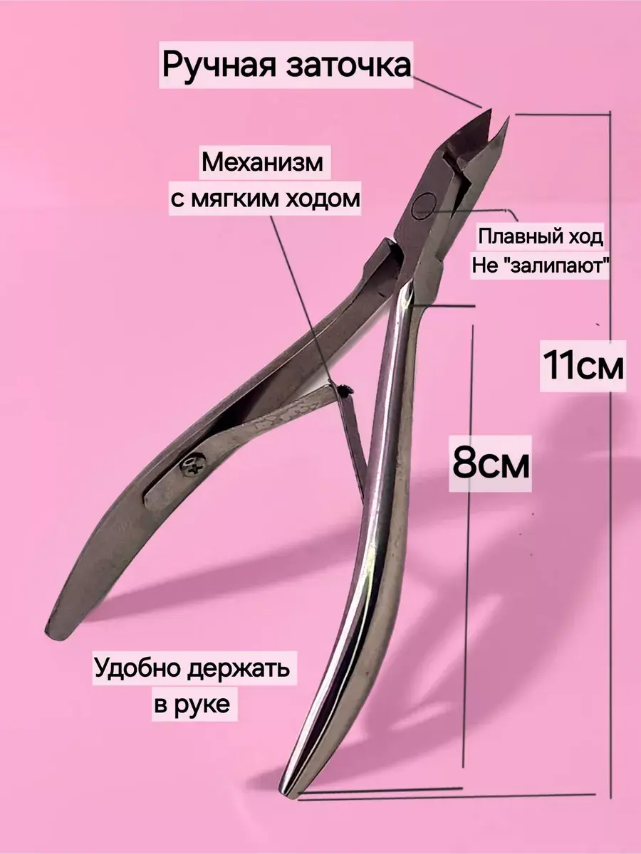 Аккуратно удаляют кутикулу и обеспечивают точный ровный срез. Режущие полотна при сыкании не имеют просветов, щелей изазубрин. Благодаря форме ручек, инструмент удобно держать в руке. Рука не устает. Кусачки заточены вручную, что гарантирует остроту лезвий, отрегулированный плавный ровный ход без провалов и идеальное схождение режущих поверхностей. При правильном использовании не допускают образования повреждений и ранок.