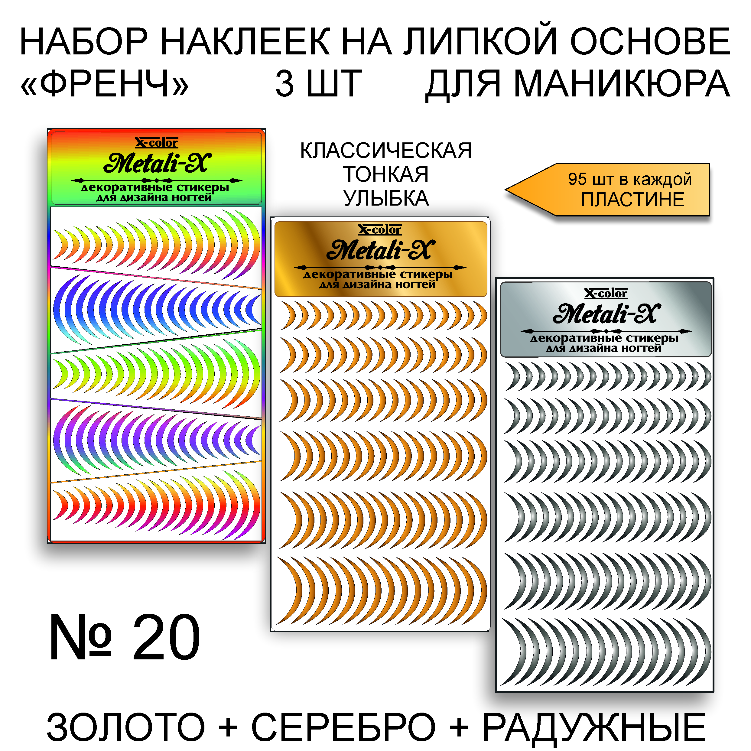 Набор Metali-X 20 Золото-Серебро-Радужные