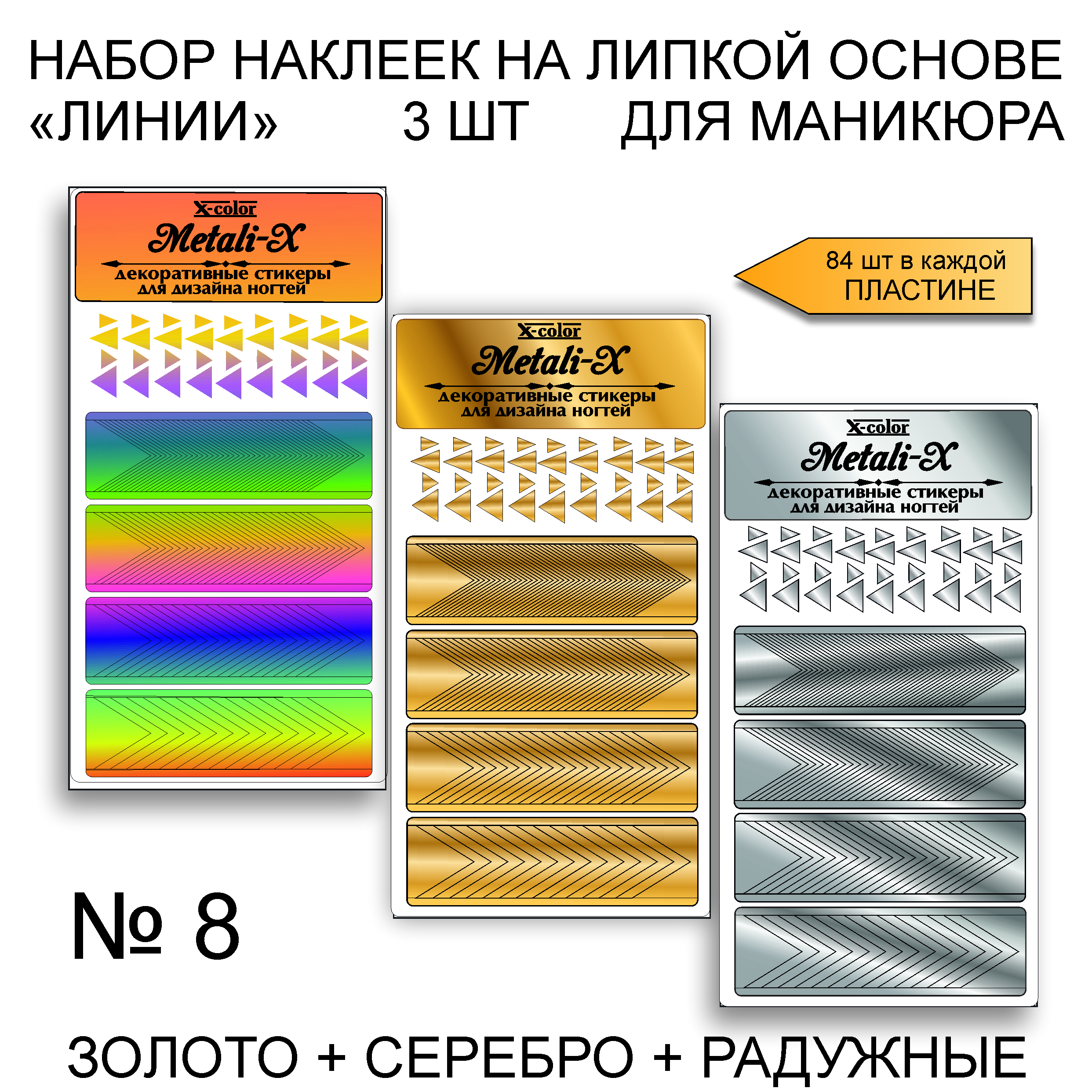 Набор Metali-X 8 Золото-Серебро-Радужные