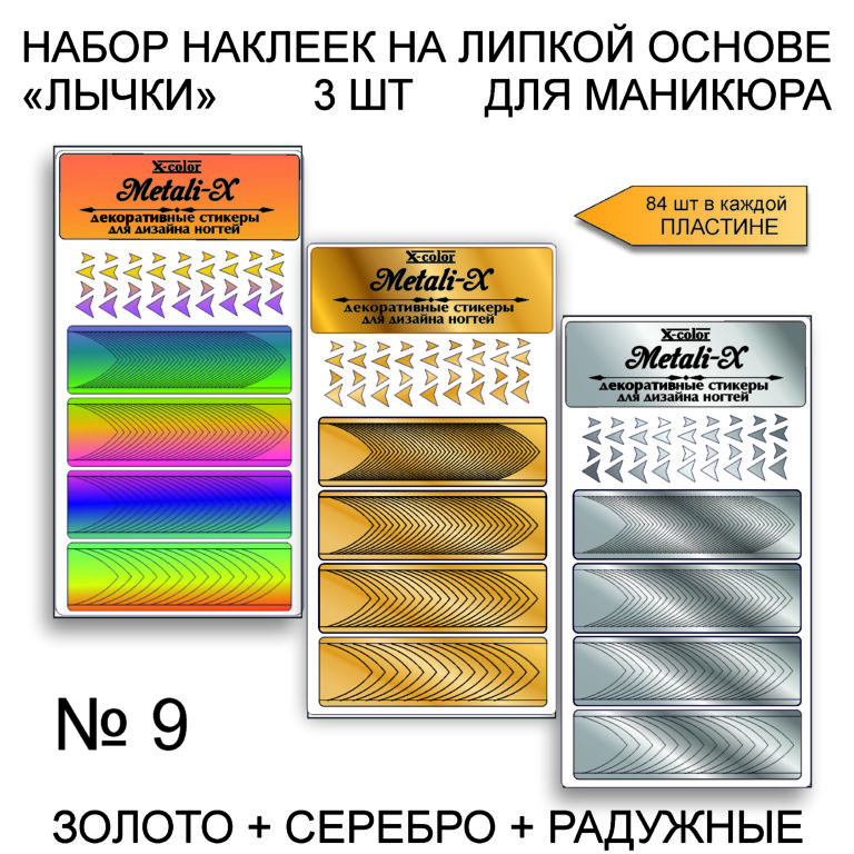 Набор Metali-X 9 Золото-Серебро-Радужные