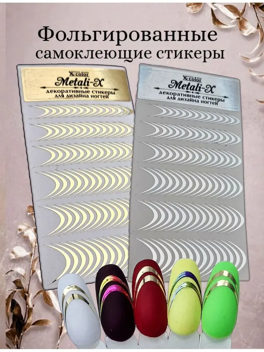 Наклейки для ногтей Metali-x. Невероятное количество рисунков , тонкая и одновременно прочная подложка, которая не порвется, позволяет сделать модный дизайн маникюра легко и просто. Слайдер или простыми словами наклейки маникюрные экономят много времени и сил. Стикер - это самоклеящаяся наклейка с вырезанным рисунком. Применяются при наращивании гелем, акрилом, покрытием гель-лаком. Способ применения: подготовьте ногти, нанесите цветное покрытие, Обязательно удалите липкий слой ,пинцетом снимите элемент , прижмите ее, уделяя внимание краям, покройте топом только слайдер, просушите в лампе 5 сек., нанесите финишный слой топа, просушите. С помощью слайдеров для украшения ,можно создавать абсолютно любой декор, добавлять для украшения маникюра- гель-паутинку ,хлопья юкки, слюду, стразы сваровски, фольгу, битое стекло дизайн, блестки, лепку , омбре , китайскую роспись.