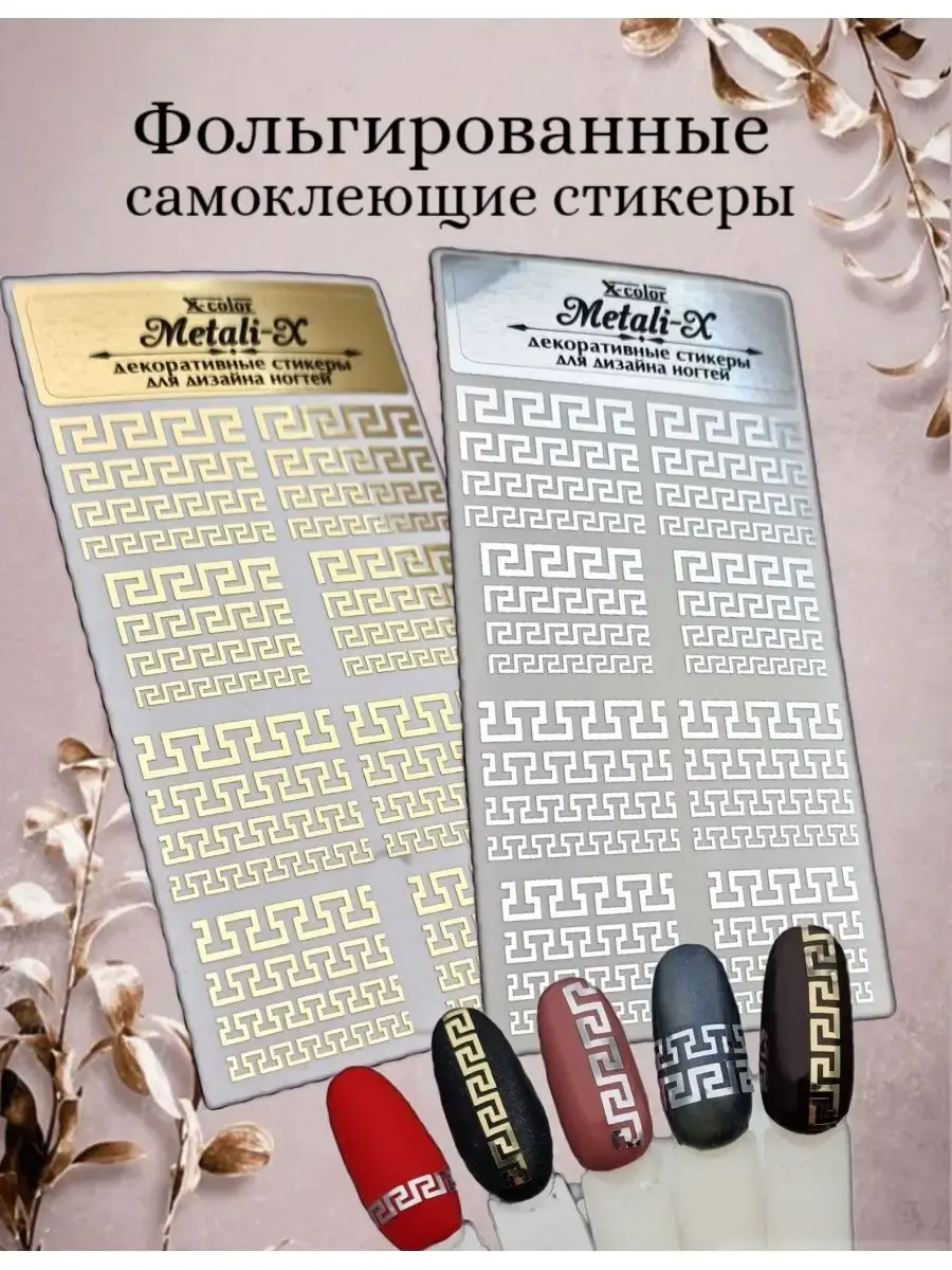 Наклейки для ногтей Metali-x. Невероятное количество рисунков , тонкая и одновременно прочная подложка, которая не порвется, позволяет сделать модный дизайн маникюра легко и просто. Слайдер или простыми словами наклейки маникюрные экономят много времени и сил. Стикер - это самоклеящаяся наклейка с вырезанным рисунком. Применяются при наращивании гелем, акрилом, покрытием гель-лаком. Способ применения: подготовьте ногти, нанесите цветное покрытие, Обязательно удалите липкий слой ,пинцетом снимите элемент , прижмите ее, уделяя внимание краям, покройте топом только слайдер, просушите в лампе 5 сек., нанесите финишный слой топа, просушите. С помощью слайдеров для украшения ,можно создавать абсолютно любой декор, добавлять для украшения маникюра- гель-паутинку ,хлопья юкки, слюду, стразы сваровски, фольгу, битое стекло дизайн, блестки, лепку , омбре , китайскую роспись.