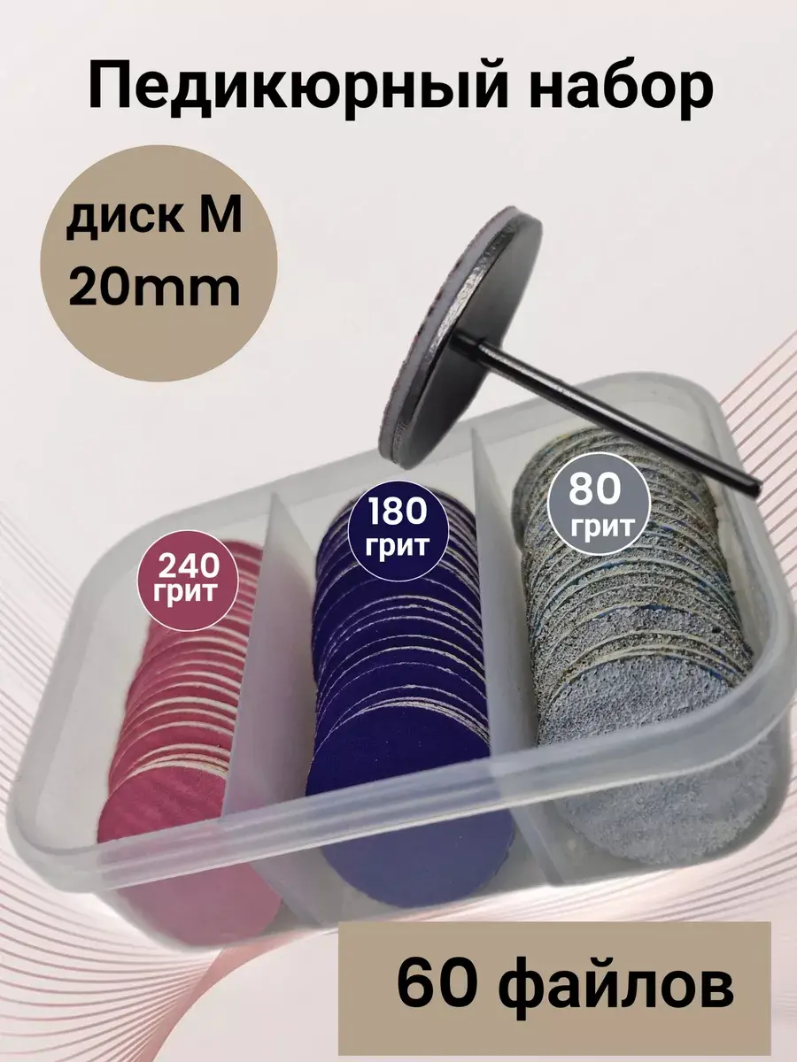 Смарт диск маникюрный М, d20 мм со сменными файлами - это незаменимый инструмент в вашем арсенале для полного ухода за ногтями и кожей с помощью фрезы для маникюра и педикюра. Диск очень высокого качества , хорошо отцентрирован, не ржавеет при дезифекции и стерилезации, не гнется, не вибрирует. Фрезы для снятия позволяют качественно снять огрубевшую кожу. Находясь в основе педикюрного бокса, он станет необходимым аппаратом для обработки и гладкости ногтей, ног, палец и пяток. Вы сможете провести аппаратный педикюр в домашних условиях, который решит проблему с огрубевшей кожи , трещин , натоптышей , мозолей. В контейнер имеются наклейки сменными абразивными файлы 80 , 180 , 240 грит, которые позволяют достичь гладкого и здорового вида ногтей после шлифовки . Они не только эффективно удаляют ороговевшие части пятки, но и обеспечивают полную обработку ногтевой пластины. Данное средство является расходником, но благодаря металлической основе и высокому качеству изготовления, оно долговечно и прослужит вам на долгое время. Одноразовые насадки гарантируют безопасность использования, так как каждая насадка будет новой и стерильной. Это особенно важно при депиляции и обработке ногтей, чтобы избежать возможных инфекций и раздражений. Смарт диск для педикюра М 20мм дополнительно включает в себя подарочный лоток, где можно хранить все аксессуары и инструменты. Эти подарки в виде сменных наклеек на диск. Практичное решение, которое позволит вам сохранить порядок и все необходимые вещи всегда будут под рукой.